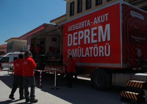 Simülatörümüze aldığımız vatandaşlarımızla deprem anında korunma biçimlerini uygulayarak simülatörümüzü faaliyete geçiriyoruz. Buradaki hedefimiz bugün olabildiği kadar çok vatandaşımıza ve çocuğumuza ulaşmak. Deprem öncesi alınacak tedbirlerle ilgili bilgiler vermek." dedi.
