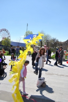 Bolu Sanat Tiyatrosu’nun da katkılarıyla yapılan Uçurtma Şenliğinde önce çocuklara pasta dağıtıldı. 23 Nisan pastasından alabilmek için çocuklar büyük bir kalabalık oluştururken, bazı çocuklar da uçurtmalarını ayarlamaya çalıştılar. Rüzgarın da etkisiyle güneşli havada uçurtma uçuran çocukların mutluluğu yüzlerinden okunurken, bazıları da yere çakılan uçurtmalarını yeniden havalandırmak büyük çaba gösterdiler. Parktaki kırmızı beyaz balonlardan oluşan kemer de, parçalanarak balonlar tek tek çocuklara dağıtıldı.
