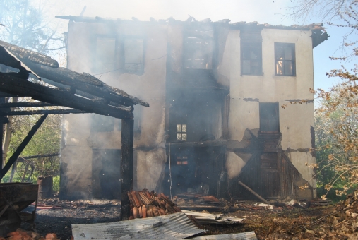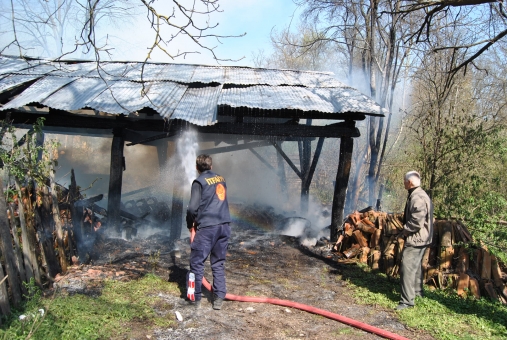 Üç katlı ahşap evin en üst katında çıkan yangın kısa sürede evin tamamını sardı ve evin yanında bulunan odunluğa sıçradı.