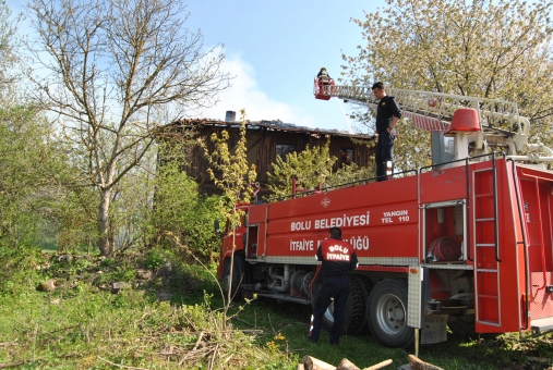 Vatandaşların ihbarı üzerine olay yerine Bolu Belediyesi İtfaiye Müdürlüğü ekipleri müdahalede bulundu. Alevler nedeniyle yıkılan evin çatısından ve kırılan pencere bölümlerinden tazyikli suyla yangına müdahale eden ekipler, yangını kısa süre içerisinde kontrol altına almayı başardı.