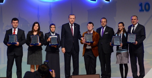 Başbakan Erdoğan, sanattan medyaya, sosyal sorumluluktan engelli vatandaşların sorunlarına çözüm üretmeye kadar pek çok konuda sergilenen projelerin, Türkiye'nin devlet-millet kaynaşmasında büyük mesafeler kat ettiğinin işareti olduğunu söyledi.