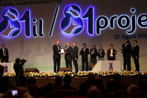 Bolu Belediye Başkanı Alaaddin Yılmaz, AB Bakanlığının "81 İl, 81 Proje" adlı AB Projeleri Festivali kapsamında “Enerji Verimliliği Uygulamaları – Pasif Evler” isimli eğitim projesi ödülünü İstanbul Haliç Kongre Merkezi’nde yapılan törende Başbakan Recep Tayyip Erdoğan’ın elinden aldı.