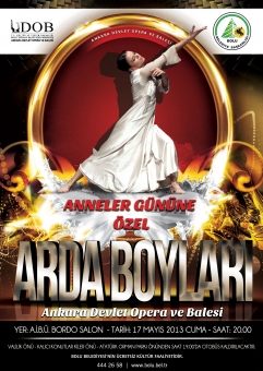Ankara Devlet Opera ve Balesi tarafından, 17 Mayıs 2013 Cuma günü ‘Arda Boyları’ adlı bale gösterisi sergilenecek. Bolu Belediyesi tarafından kültür etkinlikleri kapsamında Anneler Günü’ne özel organize edilen ücretsiz gösteri, Abant İzzet Baysal Üniversitesi Bordo Salon’da saat 20.00’da sahnelenecek. Bütün vatandaşlarımızın davetli olduğu gösteri için, Bolu Belediyesi tarafından, Valilik önü, Kalıcı Konutlar Kiler önü ve Atatürk Orman Parkı önünden saat 19.00’da araç kaldırılacaktır.