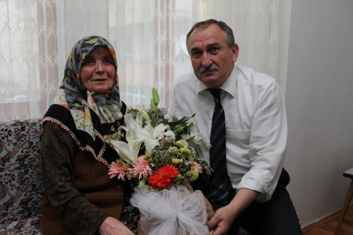 Fatma Mitralyöz’ün elini öperek Anneler Günü’nü kutlayan Belediye Başkan Yılmaz, “Annemizin Anneler Günü’nü kutluyorum. Biraz geciksek de anneler hep affedici olur ve bizi affeder. Çocukluğumda bu ailemizin üzerimde büyük emeği var. Eskişehir’de okuyan en büyük oğlu orada verilen elbiseleri 1 yıl giydikten sonra ertesi yıl bana verirdi. Ben okul hayatımda üzerime bir şey giydiysem bu annemizin sayesinde olmuştur. En büyük oğlu Eskişehir’de yatılı okuduğu için her yıl okuldan verilen elbiseleri ertesi yıl bana verirdi. Ben o elbiselerle çok rahat bir şekilde okulumu bitirdim. 2 tane oğlu vardı. Bir tanesi diş hekimiydi. Seben’de görev yaptığı sürede diğeri de onun yanında teknisyen olarak çalıştı. Teknisyen olan benimle aynı yaştaydı. Biz onlarla aynı yatakta çok yattık. Allah böyle insanlardan razı olsun. Fakat annemiz 3 erkek evladını da genç yaşta kaybetti. Ben annemizi her gördüğümde, Kızık Yaylası bayramına her gittiğimde mutlaka ararım. Böyle insanlar birçok insanın yetişmesine vesile oluyor. Allah ömürlerini uzun etsin” diye konuştu.