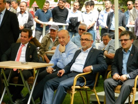 Ak Parti İl Başkanı Ömer Sayın, İl Genel Meclisi Başkanı Mücahit Kutlu ile aynı masada açılışı izleyen CHP’li Milletvekili Tanju Özcan, Başkan Yılmaz’ın kürsüdeki sözlerini gülümseyerek dinledi.