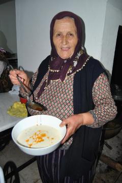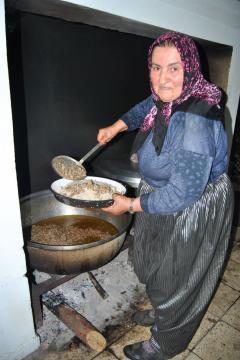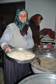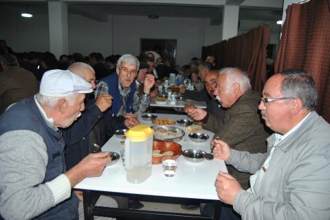 Namaz sonrası mahalleliler ve davetliler, köy konağında hep birlikte akşam yemeği yedi. Kurulan metrelerce uzunluktaki sofralar defalarca doldu, boşaldı. Gecede yaklaşık 2 bin kişiye yemek verildi.
