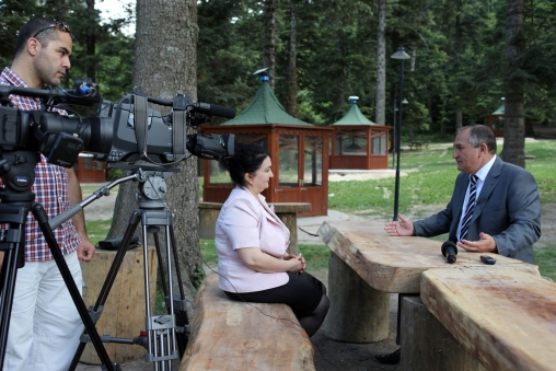 “Öncelikle dost, kardeş Azerbaycan Televizyonu vasıtasıyla kökümüzün geldiği bütün Türk dünyasındaki kardeşlerimize Türkiye’nin en güzel kenti olan Bolu’dan sevgi ve selamlarımızı yolluyorum. Bolu takriben birkaç saatlik yolculukla hem İstanbul, hem de Ankara’ya çok yakın bir kent. Ayrıca Allah’ın yaratırken çok cömertçe davrandığı, yeşilin her tonunu bünyesinde barındıran bir şehir. Bolu dünyada dört mevsimin doyasıya yaşandığı tek kenttir. Biz de bu kente hizmetkârlık yapmak için görevlendirilmiş bulunuyoruz. Halkımızdan aldığımız güçle şehrimizi doğasıyla uyumlu hale getirmeye çalışıyoruz. Bunun içinde göreve başladığımız günden bu yana çok yoğun bir şekilde çalışıyoruz. Bu çalışmaların yavaş yavaş şekillenmeye başladığını görmeye başladık. Şehrimiz Türkiye’de yaşanabilir kentler arasında ilk on arasında. Ama biz istiyoruz ki, Allah bu kadar güzel coğrafyayı bize verdiyse niçin dünyada yaşanabilir kentlerin içerisinde ilk onun içerisinde olmasın. Çalışmalarımızı bu hedef doğrultusunda yürütüyoruz. İnşallah bu hedefi adım adım gerçekleştireceğiz. Yaptığımız bütün projeler çevreye duyarlı projelerdir. Biz zaten doğasıyla uyumlu bir şehir için bu çalışmaları yapıyoruz.”