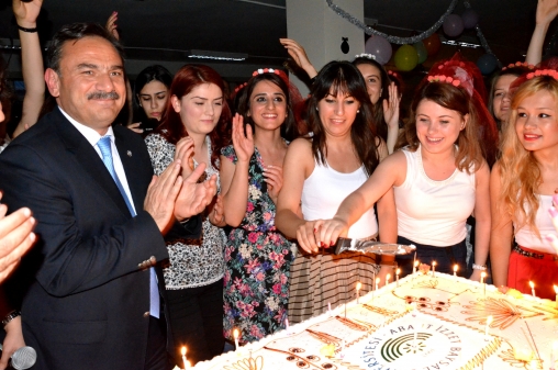 Canlı müzik eşliğinde halaylar çekerek eğlenen öğrenciler gecenin sonunda Rektör Coşkun ve Doç. Dr. Erdal Bekiroğlu ile birlikte mezuniyet pastası kestiler.