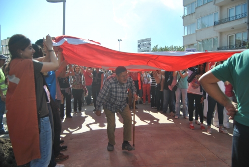 Grup daha sonra D100 karayoluna yürümek isterken, emniyet güçlerinin izin vermemesi üzerine rota Karaçayır parkına döndü. Parka alkışlar eşliğinde giren grup bir süre oturma eylemi yaparak alandan ayrıldı.
