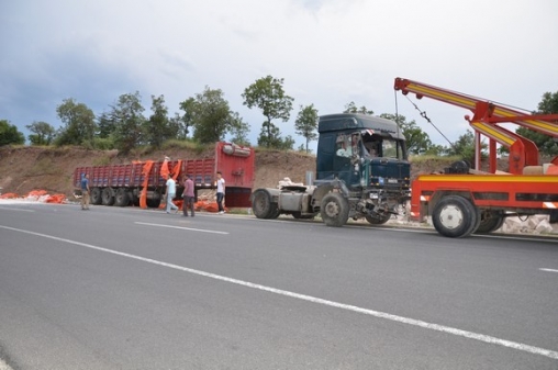Alınan bilgiye göre, Ankara'dan Bolu'ya gaz beton taşıyan 14 DC 445 plakalı tır, Kargasekmez' den aşağı inerken sürücünün bir anlık dalgınlığı sonucu direksiyon hakimiyetini yitirmesiyle yan yattı. Araç sürücüsü kazadan şans eseri yara almadan kurtulurken, TIR'da büyük çapta maddi hasar oluştu. Öte yandan, TIR'daki gaz betonlar da yola saçıldı.