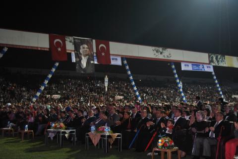 Almanya, Norveç, Afrika’nın çeşitli ülkeleri, Moldovya gibi birçok ülkeden Ülkemize gelen öğrencilerin Türkçe şarkı, şiir performanslarını izlemek için stadyuma binlerce kişi geldi. Organizasyon ekibi stadyumun koltuklarına sığmayan kalabalık için çözümü stadın yeşil alanlarına sandalye koyarak buldu.