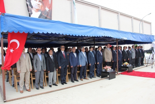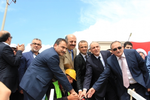 Protokol üyeleri törende yaptıkları konuşmaların ardından butonlara basarak, AİBÜ’lü personeller için yapılacak lojmanların ilk temellerini attılar.
