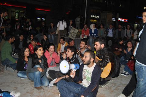 Her akşam saat 19:00’da İzzet Baysal Caddesinde ki bir noktada bir araya gelen bir grup genç slogan atarak veya oturma eylemi yaparak tepkilerini dile getiriyorlar. Sosyal medyadan örgütlenen gençler önce ki akşam iki ayrı grup olarak başlattıkları eylemi Akbank önünde bir araya getirdiler. Farklı siyasi görüşlerde ki yüzlerce öğrenci sosyal medyada tıklanma rekorları kıran, Gezi parkı eylemleri için Boğaziçi Üniversitesi konservatuar öğrencileri tarafından bestelen “Çapulcu musun vay vay” şarkısını hep bir ağızdan söyledi. Bir süre oturma eylemi yapan gençler yere serdikleri birkaç metrelik boş beyaz beze tepkilerini ve sloganlarını yazdılar.