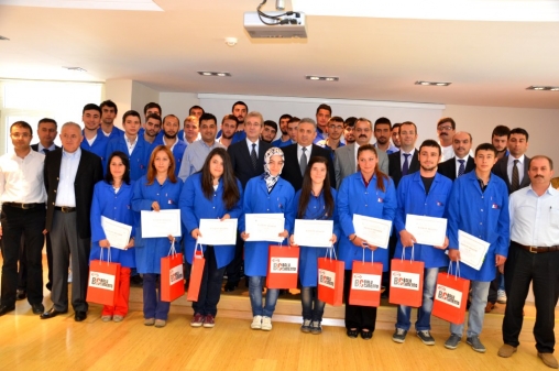 Yapılan konuşmaların ardından, 14 hafta boyunca Bolu Çimento Sanayi A.Ş’nin fabrika ve laboratuarlarında “Beton Teknolojisi” dersini uygulamalı olarak gören 27 öğrenciye sertifikaları verildi.