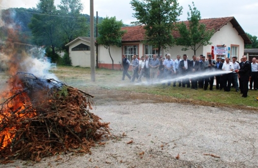Yapılan konuşmaların ardından Yeşilçele, Ömerler, Beşkonak, Aşağıkınık, Kuzca, Köseler, Çökeler, Mamatlar, Karşıköy, Cumaköy, Yaylabeli ve Değirmenkaya köylerinin muhtarlarına Vali Özçimen tarafından su tankerleri verildi. Törenin sonunda ise temsili bir yangın söndürme tatbikatı yapıldı.