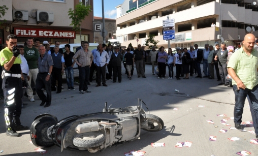 Edinilen bilgiye göre, kaza, PTT Caddesi’nde meydana geldi. İbrahim Akyol idaresindeki 06 DF 8157 plakalı motosiklet karşı yönden gelen İsa Meytar idaresindeki 14 BG 940 plakalı otomobil ile kafa kafaya çarpıştı. Kaza sonrasında motosiklet sürücüsü yerde sürüklenirken, çevreden gelen vatandaşlar şahsa ilk müdahaleyi yaptılar. Olay yerine gelen 112 sağlık ekipleri yaralı motosiklet sürücüsü İbrahim Akyol’u sedyeye koyarken, Akyol “Ben patrona ne diyeceğim. Ben şimdi ne yapacağım” diyerek ağladı. Çevredeki vatandaşlar sürücüyü sakinleştirdi. Polis kazayla ilgili inceleme başlatırken, yaralı sürücünün sağlık durumunun iyi olduğu ifade edildi.
