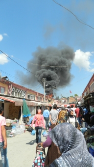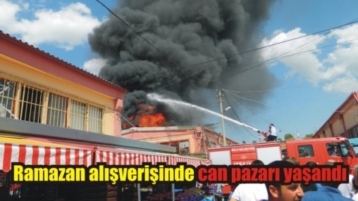 Pazaryerinde yangın: 1 yaralı