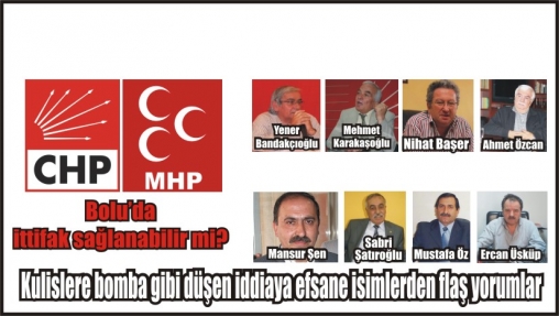 İddiaya göre, İstanbul ve İzmir’de CHP’nin adayı, Ankara’da ise MHP’nin adayı desteklenecek. Ulusal basına konu olan bu flaş iddia Bolu’da da bu iki siyasi partinin kulislerinde sıkça konuşulan ve gün boyunca tartışılan konulardan birisi oldu. İttifakın Bolu’da hayata geçip geçemeyeceği, ittifak halinde bu durumun parti tabanlarına nasıl izah edileceği, olası ittifakın sonuçlarının neler olabileceği masaya yatırıldı.