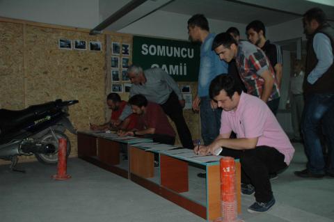 Tabaklar Mahallesi’nde bulunan Somuncu Camii’nin cemaati dün kılınan Cuma namazı sonrası Bolu’da yeni bir tarih tartışmasını daha başlatacak girişime imza attı. Somuncu Camii’nin tadilat dolayısıyla ibadete kapatılması nedeniyle katlı otoparkta oluşturulan mescitte ibadetlerini gerçekleştiren cemaat, tadilat sonrası Somuncu Camii’nin ek bölümünün yıkılacağını, caminin küçüleceğini savundu.