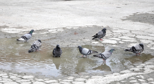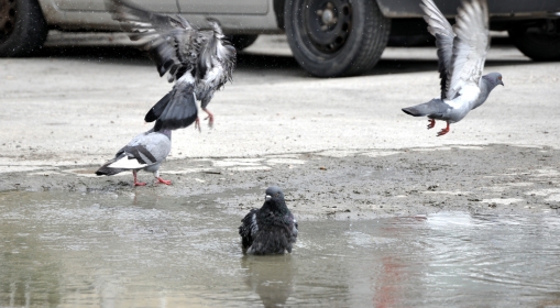 Üç günden bu yana serin havanın tadını çıkaran Bolulular, yeniden kavurucu sıcaklarla boğuşmaya başladı. Hava sıcaklıklarının yeniden artmasıyla birlikte hayvanlar da kendilerine serinleyecek yer aradı. Bolu Belediyesi İtfaiye Müdürlüğü’nün bahçesinde yol ortasına biriken suyun içerisine giren güvercinler, suya yatarak serinlemeye çalıştılar. Birbirleriyle suyun içerisinde oyun oynayan sevimli hayvanlar, zaman zaman kanatlarını açarak silkelenip üzerlerindeki su birikintisinden kurtulmaya çalıştılar. Çevreden geçen vatandaşlar da güvercinlere dokunmadan oyunlarını izlediler.