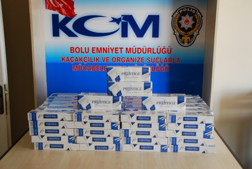 Kaçakçılık ekipleri Ankara-İstanbul Otoyolu üzerinde kontrol amaçlı durdurulan yolcu otobüsünde yolculuk etmekte olan M.G. isimli şahsın valizinde arama yaptı. Aramalar sırasında 127 karton içine gizlenmiş bin 270 paket gümrük kaçağı bandrolsüz sigara ele geçirildi.