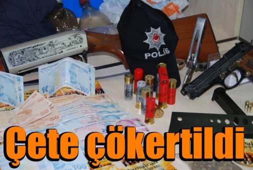 Bolu Emniyet Müdürlüğü Kaçakçılık ve Organize Suçlarla Mücadele Şubesi, geçen günlerde bir operasyon düzenleyerek, esnafı haraca bağladıkları ve uyuşturucu ticareti yaptıkları iddia edilen suç örgütünü takibe aldı. Birçok esnafı dolandırdıkları ve tehdit yoluyla para aldıkları iddia edilen çeteye yönelik operasyonda 15 kişi gözaltına alındı. Liderliğini M.K.'nın yaptığı şüphelilerin ev ve işyerlerinde arama yapıldı. Aramalarda, av tüfeği, kasatura, kama, kuru sıkı tabanca, muşta, çok sayıda bıçak, imzalı boş senetler, 45 gram hint keneviri tohumu, 159 uyuşturucu hap, üçer gramlık 119 paket bonzai maddesi, satışa hazır halde paketlenmiş 392 gram esrar, 3 kök hint keneviri, uyuşturucudan elde edildiği belirlenen 7 bin 280 TL, uyuşturucu madde tartmada kullanılan 2 hassas terazi, polis şapkası ve 500 TL'lik senet ele geçirildi.