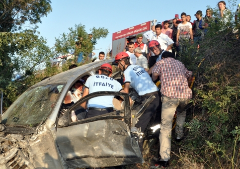 Edinilen bilgiye göre kaza, saat 19.30 sıralarında D-100 Karayolu’nun Çaydurt gişeleri yakınlarına meydana geldi. Yuva Köyü’nden şehir merkezine bayram kutlamasına giden Seçkin Sözkesen (22) idaresindeki 14 DG 410 plakalı otomobil, sürücüsünün direksiyon hakimiyetini kaybetmesi sonucu şarampole yuvarlandı. İki ağacı kökünden söken otomobil hurda yığınına dönerken, olay yerinde can pazarı yaşandı. Yoldan geçen ve kazayı gören sürücüler hemen yardıma koşarak itfaiye ve 112 Acil Servis ekiplerinden yardım istedi. Kaza sonrası çalılıkların arasına uçan otomobilde sürücü Seçkin Sözkesen, Hakan Akay (21), Muhammed Akay (20), Cengiz Gümüş (24) ve Murat Çelikbaş (19) yaralandı. 4 yaralı olay yerine gelen vatandaşlar ve itfaiye ekipleri tarafından yol kenarına çıkartılırken, araçta sıkışan Hakan Akay uzun süre kurtarılmayı bekledi. Bolu Belediyesi İtfaiye Müdürlüğü’ne bağlı kaza kırım ekibi, dakikalarca sıkışan genci kurtarmak için uğraştı.