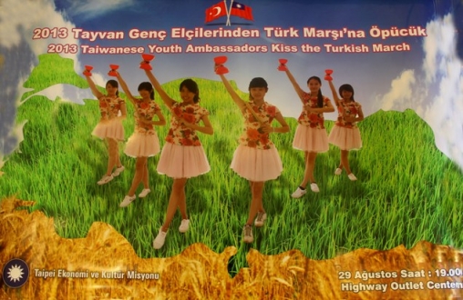 ‘2013 Tayvan Genç Elçileri’ adlı 6 Tayvanlı gençten oluşan grup Tayvan’ın kültür ve geleneklerini tanıtmak için ‘Yaşamdan Sanat’ temalı bir gösteri ve tanıtım yapmak üzere 29 Ağustos Perşembe günü Highway Outlet’te olacak. Bahsedilen etkinlik kapsamında gerçekleşecek gösteriler arasında, Tüy kalemle kaligrafi, Kılıç dansı, Diabolo(makara ile oynanan oyun) gösterisi, Geleneksel dans gösterileri, Tayvan Kültürü ve el sanatlarının tanıtımı ve Çin Düğüm El Sanatı gösterileri de var.