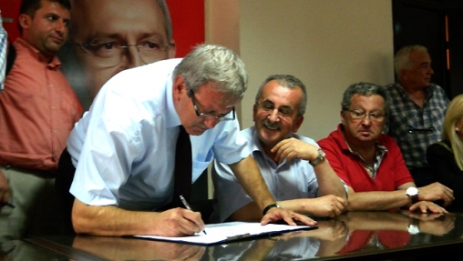 birlik beraberlikten bahseden tanju özcan ve haşim ulusoyu göremiyorum.partiye senelerce hizmet etmiş gönül vermiş o kadar il ve ilçe başkanları partililer buradayken kendileri nerede.ama ilçe seçiminde adaylık açıklamasını yapmayı biliyor.dp den ithal mehtap hanımda yok.nede olsa gerçek CHP liler orada.