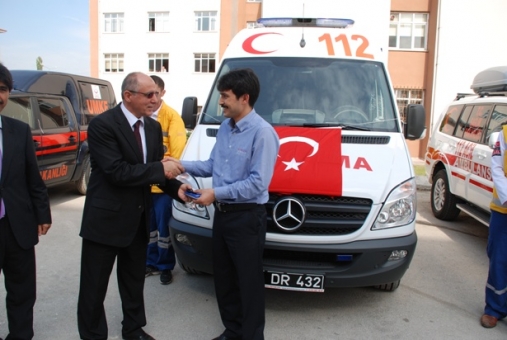 Düzenlene teslim töreni Vali İbrahim Özçimen'in bir ambulansın direksiyonuna oturarak deneme sürüşünün ardından sona erdi.