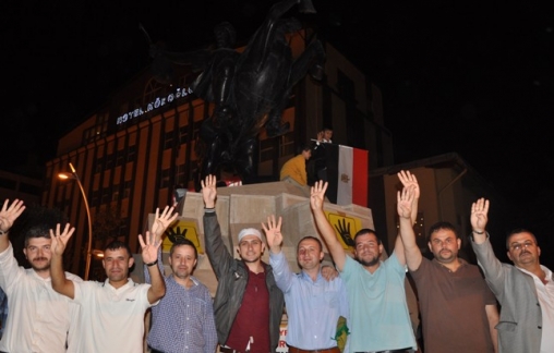 İnsan Hak ve Hürriyetleri (İHH) İnsani Yardım Vakfı Bolu temsilciliği tarafından Belediye Meydanı’nda “Suriye ve Mısır’daki direnişe Bolu’dan 1000 selam. Zulme sessiz durma, namaza dur, duaya dur, seccadeni al gel” adı altında yapılan etkinliğe yaklaşık 500 kişi katıldı. Yatsı ezanının okunmasıyla Belediye Meydanı’nda toplanan grup hep birlikte Mısır ve Suriye’de yaşanan katliamlar için namaz kıldılar. Namaza Bolu İl Müftüsü Mehmet Şahin’in de katıldığı namazda kadınların yoğun katılımı gözlerden kaçmadı.