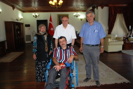 Yolçatı Köyü'nde ikamet etmekte olan yürüme engelli Ekrem Mutlu, annesi Rahime Mutlu ile birlikte Vali İbrahim Özçimen'i makamında ziyaret ederek isteklerde bulunmuştu.