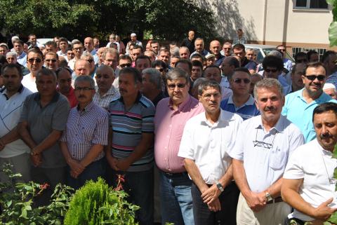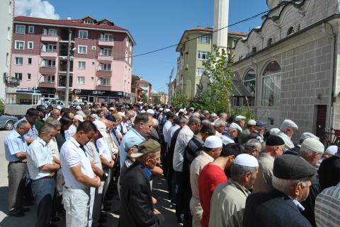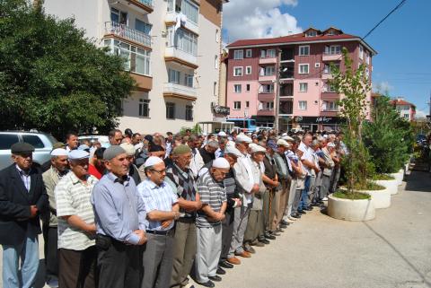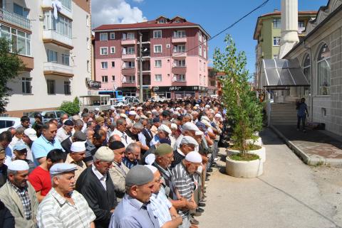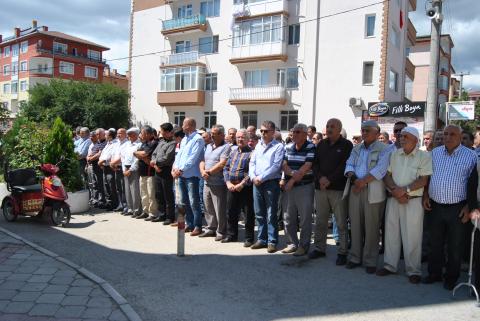 Namazdan önce Yeşil Cami’de Mevlid-i Şerif okutuldu, merhume için dualar edildi. Öğle namazının ardından ise, cami önünde cenaze namazı için saf tutuldu. Cenaze namazında Gençlik ve Spor Bakan Yardımcısı Metin Yılmaz ile CHP Bolu Milletvekili Tanju Özcan yan yana saf tuttular. Özcan’ın burada Bakan Yardımcısı Yılmaz’a başsağlığı dileyerek, taziyesini paylaştığı görüldü, ikilinin birbirlerini kucaklamaları objektiflerce görüntülendi.