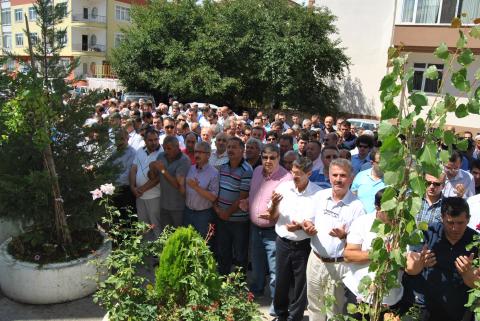 Merhume için öğle namazına müteakip kılınan cenaze namazı da tıpkı evi gibi adeta insan akınına uğradı.