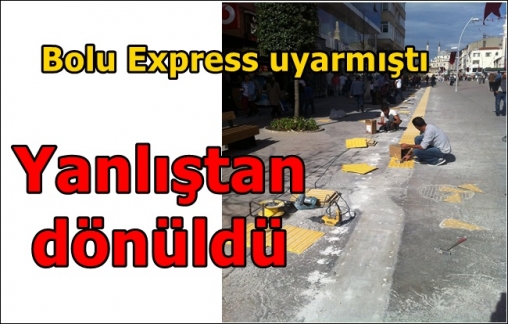 Yaklaşık 10 gün önce “Burası Bolu Burada Engel Dolu” başlığı ile İzzet Baysal Caddesine görme engelli vatandaşlar için yapılan izli yol uygulamasında ki yanlışları dile getirmiştik. Bolu Belediyesi ise yanlıştan dönerek izli yol uygulamasında ki hataları düzeltmeye başladı. Dün caddeye döşenen plastik izli yol platformları sökülmeye başlandı.