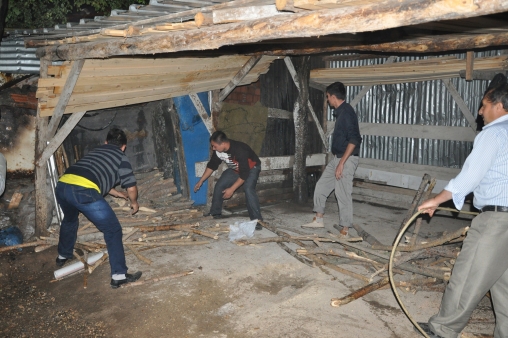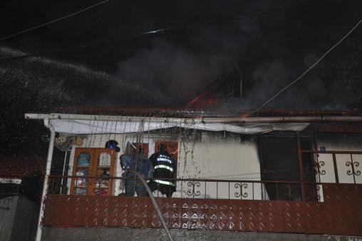 Edinilen bilgiye göre, yangın dün gece saat 22.30’da meydana geldi. Dodurga Mahallesinde Yeter Deniz’e ait evde henüz bilinmeyen bir nedenle yangın çıktı. Evde yaşayan 4 kişi bir anda kendini dışarıya atarken, itfaiye ekiplerine haber verildi. Mahalle sakinleri alevlere müdahale ederken, olay yerine gelen Bolu Belediyesi’ne bağlı itfaiye ekipleri alevlere kontrol etmekte güçlük çekti. Vatandaşların yangına müdahale etmek istemesi sonrasında itfaiye erleri büyük zorluk yaşadı. Gözyaşları arasında alevlerin sardığı evlerini izleyen aile sakinleri gözyaşlarına boğuldu. Yangında yaşlı bir kadın fenalaşarak hastaneye kaldırıldı. Alevlerin evin hemen yanında bulunan odunluğa sıçraması ihtimaline karşı vatandaşlar büyük çaba harcadı. Alevler evin çatısını tekrar sarınca tekrar büyük panik yaşandı. Ev sahipleri alevlerin arasına girerek yangına müdahale etmeye çalıştılar. Polis ekipleri vatandaşların yangın bölgesine girmemesi için büyük çaba sarf etti. Yangın kontrol altına alınırken, evin sahibi Yeter Deniz, “Ne olduğunu anlayamadık. Bir anda alevler evi sardı. ” dedi.