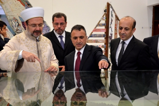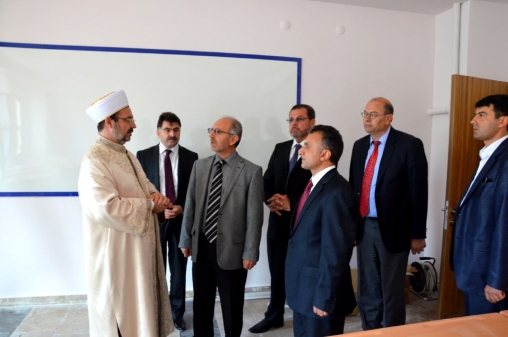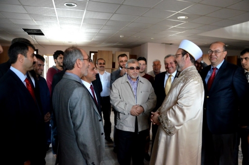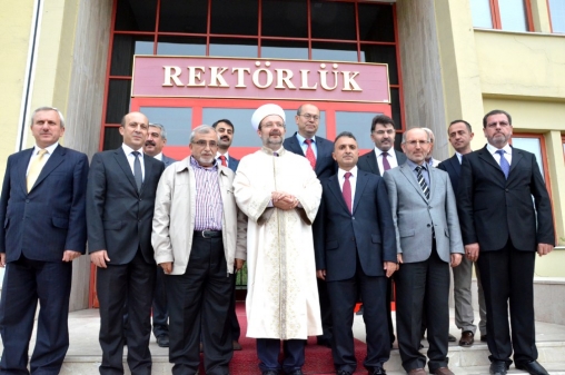 Diyanet İşleri Başkanı Prof. Dr. Görmez, ziyaret sırasında ilk olarak İlahiyat Fakültesi’ni yaptıran hayırsever iş adamı Ali Ericek’e teşekkür etti. Prof. Dr. Görmez, Ali Ericek’in söz konusu binaların yapımını da tereddüt etmeden üstlendiğini belirterek, “Ali beyden de biz bunu beklerdik. Daha önce bir konuşmamda İlahiyat Fakültesi varsa camisi de olması lazım demiştim. Gördüm ki üniversitemize çok güzel bir cami yaptırıyor. Allah hayırlarını makbul ve aziz eylesin” diye konuştu. Dekan Prof. Dr. Cağfer Karadaş’dan fakülte hakkında bilgi alan Prof. Dr. Görmez, “Çok ferah bir mekan olarak tasarlanmış. Bu güzel mekanın teşrifinde kullanılacak tablolar başkanlığımızın hediyesi olsun.” dedi.