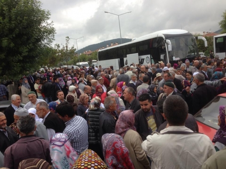 Kalıcı Konutlar Camii önünde toplanan hacı adayları aileleriyle vedalaştılar. Hacı adaylarına önemli uyarılarda bulunuldu. Haccın sabır gerektiren bir ibadet olduğunu, bunun için herhangi bir sebeple karşılaşılan olumsuzluklara sabır gösterilmesi gerektiğine işaret edilerek, hacı adaylarından dünyadaki yaşanan olumsuzlar içinde dua etmeleri istendi. Yoğun bir kalabalığın oluşturduğu uğurlama töreninde yakınlarıyla vedalaşan hacı adayları duygusal anlar yaşadı. 5 otobüsle yaklaşık 200 hacı adayı dualarla Medine’ye uğurlandı.