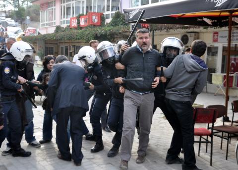 Bu esnada bazı protestocuların yıkımı gerçekleştirecek kepçenin operatörünü indirmek üzere girişimler sergiledikleri görüldü. Bu esnada protestoculara müdahale eden zabıta görevlileri ile protestocular arasında arbede yaşandı. Olaylar polisin müdahalesiyle güçlükle son buldu. Bölgeden bir süre sonra Çevik Kuvvet ekiplerinin çekilmesi sonrası protestolarda tansiyon geriledi. Bunun üzerine protestocu grup, Halkevi’nde oturarak bir süre çay içti.