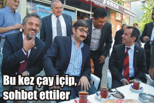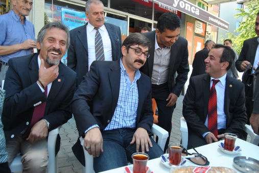 Bolu’ya yeni atandığı öğrenilen ve İstanbul başta olmak üzere Türkiye’nin dört bir yanında görev yaptığı öğrenilen Kahyaoğlu ile CHP’li siyasiler, dün bir kez daha bir araya geldi. CHP üyelerinin, CHP Bolu Belediye Başkan Adayı’nın belirlenmesi öngörüsüyle sandığa gittiği 50’inci Yıl İlköğretim Okulu’ndaki seçimlerde güvenlikten sorumlu ekiplerin yine başında bulunan Kahyaoğlu, CHP Milletvekili Tanju Özcan ve Merkez İlçe Örgütü Başkanı Hüseyin Yıkılmaz ile birlikte çay içti, sohbet etti. Halkevi yıkımında yaşanan olayların çok fazla yer almadığı sohbette Milletvekili Özcan ile Yıkılmaz, Bolu’ya yeni atanan şube müdürüne görevinde başarı dileğinde bulundu. Basın mensuplarının da tanıklık ettikleri sohbetten objektiflere işte bu görüntü yansıdı.