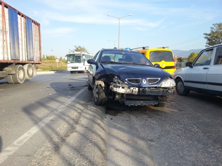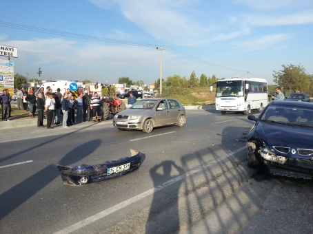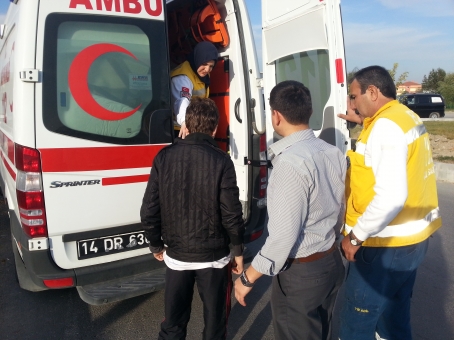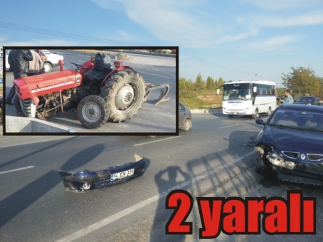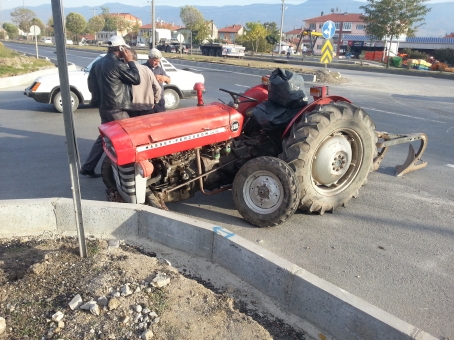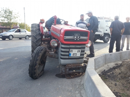 Olay, önceki gün saat 17.00 sıralarında Sanayi Kavşağı’nda meydana geldi. Tahir Y. idaresindeki 81 AV 072 plakalı traktör, ters yönden D-100 Karayolu’na girdi. Ankara’dan İstanbul istikametine gitmekte olan Ertuğrul E. hakimiyetindeki 14 EN 339 plakalı otomobil traktörle burun buruna çarpıştı. Çarpmanın etkisiyle 180 derece dönen traktör refüje çarptı. Ön dingili kırılına traktörün tekeri trafik akışının yoğun olduğu yola fırladı. Çarpmanın etkisiyle otomobilin ön tamponu koptu ve otomobil sürücüsü tarafından güçlükle durduruldu.