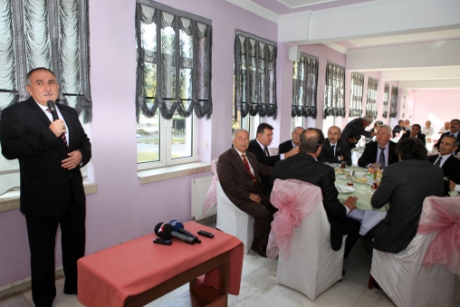 Konuşmasına salonda bulunan herkesin bayramını kutlayarak başlayan Belediye Başkanı Alaaddin Yılmaz, “Biz Türkiye’de ve ilimizde bayramlaşıp birbirimizle şakalaşırken İslam coğrafyasının olduğu birçok bölgede çok büyük üzüntüler yaşanıyor. Dünyanın en büyük medeniyeti Osmanlı medeniyeti. Bu medeniyet bin yıldan fazla dünyada hüküm sürmüş. Osmanlı’dan kurtulmak içinde bütün dünya birlikte hareket etmiş ve iç ve dış sıkıntılar çıkartarak Osmanlı’dan kurtulmuşlar. Osmanlıdan kurtulan güçlerinde tamamı şu anda sıkıntı içerisindeyse buda bir medeniyetin gücünü ortaya koyuyor. İnşallah günümüzde de bu tür medeniyetler olur. Her türlü dili, dini ve mezhebi bir arada yaşatabilecek medeniyetler oluşturulur ve şu anki sıkıntılar yaşanmaz. Bu sıkıntıların yaşandığı çevreler bizim çevremiz. On yıl önce Irak’ta şu anda ise Suriye’de savaş var. Ülkemizin yakınında bu savaşlar olmasaydı, birde terörle uğraşmak zorunda kalmasaydık Türkiye’nin son on yılı içinde geleceği yerin neresi olacağını düşünmemiz lazım. İnşallah ülkemiz emin adımlarla ileriye doğru gidiyor, Bolu’muzda bu adımlardan nasibini alıyor. İktidarıyla, muhalefeti ile gelişmeye katkı verme konusunda birbirimize destek olmamız lazım. İnşallah hepimiz hatırlanacak iyi şeyler yaparız. Yeniden gelecekteki bayramlarınızın çok daha iyi olması temennisi ile hepinizin mübarek Kurban Bayramınızı kutluyor, Allah hepimizin yar ve yardımcısı olsun diyor, saygılarımı sunuyorum” dedi.