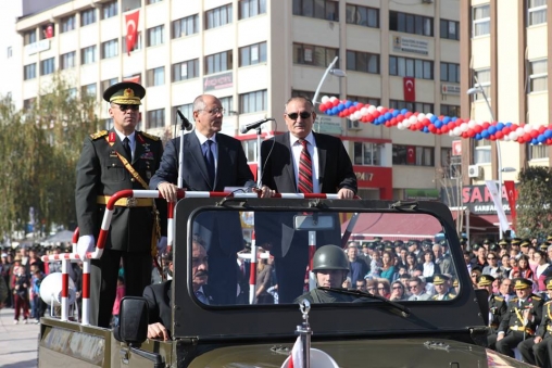 Vali İbrahim Özçimen 29 Ekim Cumhuriyet Bayramı’nın anlam ve önemini belirten konuşmasında, “Milletimizin tarihte eşi benzeri görülmemiş kahramanlık destanları yazarak gerçekleştirdiği Milli Mücadelenin sonunda kurduğu Cumhuriyetimizin 90. yıl dönümü olan bu günü büyük bir coşku, sevinç ve mutlulukla kutluyoruz. Bayramımız kutlu olsun. Bu bayram vesilesiyle Cumhuriyetimizin kurucusu Gazi Mustafa Kemal Atatürk’ü, kahraman silah arkadaşlarını, bu toprakları kanları ve canları ile vatan yapan aziz şehit ve gazilerimizi minnet ve şükranla anıyorum. Cumhuriyet; yüce Türk milletinin binlerce yıllık tarihinde ulaştığı en parlak, en muhteşem zirvedir. Cumhuriyetimizin kuruluş süreci de Milli Tarihimizin kaydettiği en büyük ve en şanlı mücadelelerden biri olmuştur. Bu Mücadele; Toplum olarak yanmış, yıkılmış, istila edilmiş bir coğrafya üzerinde yeniden dirilişimizin ifadesidir. Cumhuriyet; çalışmanın, kararlılığın, azmin, birlik olmanın, yeniden doğmanın tarihidir. Cumhuriyet, Vatan için siper edilmiş göğüslerin, kadınıyla erkeğiyle, genciyle-yaşlısıyla birleşmiş yüreklerin ve bağımsızlık yolunda kenetlenmiş bileklerin tarihidir. Cumhuriyeti ayakta tutan yegâne kuvvet, milletin kendisidir. Milletimiz, cumhuriyeti benimsemiş ve bütün değerlerine sımsıkı sarılmıştır. "Egemenlik Kayıtsız, Şartsız Milletindir" ilkesi, devletin ve rejimin temelini oluşturmaktadır” dedi.