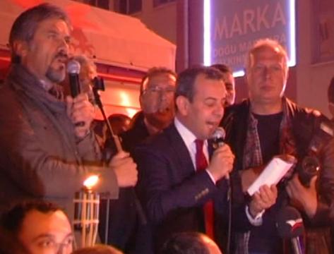 CHP İl Başkanlığı tarafından haftalarca süren organizasyonla gerçekleştirilen fener alayı yürüyüşüne binlerce yurttaş katıldı. İzzet Baysal Caddesi boyunca süren yürüyüş Bankalar Meydanı’nda son buldu. Bu noktada özel olarak oluşturulmuş platforma çıkan CHP Milletvekili Tanju Özcan, tam önünde yığılan kalabalığa eline aldığı mikrofonla seslendi.