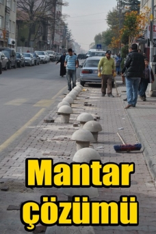 Bolu Cumhuriyet Caddesi’nde bulunan kaldırım dar gelince Bolu Belediyesi ilginç bir yöntem uyguladı. Kaldırımdaki elektrik panosunu kaldırıp, kaldırımı genişletme şansı olmayınca otopark olarak ayrılan yer de kaldırım yapıldı. Ancak kaldırımı yükseltmek yerine otopark sınırına betondan mantarlar konularak, araç park edilmesini önleme yöntemini tercih ettiler.