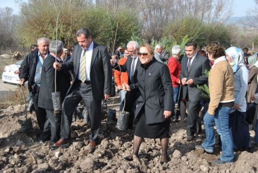 Belediye Başkan Yardımcısı Emine Davarcıoğlu fidanı dikerken, Muhtarlar Derneği Başkanı İlhan Çalışkan da kürekle toprak attı. Bolu Müftüsü Mehmet Şahin’in dua ettiği ve ardından fidan diktiği törende, Türki Cumhuriyetlerden İslamı öğrenmek üzere Bolu’ya gelen kız öğrenciler de, köylü kadınlarla beraber fidan diktiler.