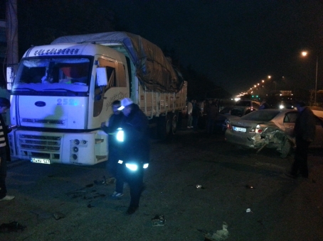Kaza, Pazar akşamı saat 20.00 sıralarında D-100 Karayolu Atatürk Orman Parkı önünde meydana geldi. 27 HU 527 plakalı kamyon ile 14 AS 259 ve 14 BT 325 plakalı otomobiller ile 14 BV 244 plakalı ticari aracın emniyet şeridinde karıştığı kaza sonrası olay yeri savaş alanına döndü. Zincirleme kaza yapan araçların bazıları hurda yığınına dönerken, otomobillerdeki hava yastıklarının zamanında açılması olası bir facianın önüne geçti. Yaklaşık 30 dakika trafiğe kapatılan bölgede araçlarından çıkan sürücülerin büyük korku yaşadıkları gözlendi. Olay yerine gelen polis ekiplerince tutanak tutulurken, kazaya karışan araçlar çekici yardımıyla bölgeden uzaklaştırıldı. Kazazede sürücüler kontrolden geçirilmek üzere Köroğlu İzzet Baysal Devlet Hastanesi Acil Servisi’ne kaldırıldı.