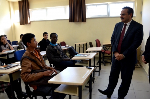 AİBÜ Yabancı Diller Yüksekokulu bünyesindeki TÖMER’de öğrencileri ders sırasında ziyaret eden Rektör Coşkun, 20 yabancı öğrenciyle sohbet etti. Öğrencilere nereli olduklarını ve hangi bölümlerde eğitim göreceklerini soran Rektör Coşkun, öğrencilerin cevaplarını tek tek dinledi. Yaklaşık 1 aydır Türkçe eğitimi alan öğrencilerin dille ilgili günlük yaşamlarında zorluk yaşayıp yaşamadıklarıyla da ilgilenen Coşkun, öğrencilerin her türlü sıkıntılarını Rektörlüğe iletebileceklerini söyledi. Sohbet sırasında TÖMER’in üniversitemiz için önemine değinen Coşkun, gelecek yıllarda merkeze daha çok öğrenci almayı hedeflediklerini söyledi. Ziyarette, TÖMER Müdürü ve Eğitim Fakültesi Türkçe Eğitimi Bölümü Başkanı Doç. Dr. Halit Karatay, TÖMER Müdür Yardımcıları Yrd. Doç. Dr. Başak Ümit Bozkurt ve Nurettin Kartallıoğlu ile okutmanlar Hilal Günay ve Haluk Güngör de Rektör Coşkun’a eşlik ettiler.