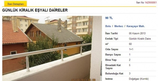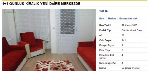Özellikle Abant, Kartalkaya, Gölcük ya da merkeze yakın köylerde yazlık/kışlık evler günlük olarak kiralanırken, evlerin günlük fiyatı 80 TL ile 500 TL arasında değişiyor. İnternet üzerindeki emlak sitelerinde günü birlik kiralanan evlerle ilgili olarak bilgiler yer alırken, daha çok kalabalık ailelerin tatil için bu uygulamayı tercih ettiği ifade ediliyor. Hafta sonu kaçamaklarına da mesken olabilecek konutlar için güvenlik uygulamalarının yetersiz oluşu endişe yaratırken, şehir içinde de günlük kiralanan daireler dikkat çekiyor. Şehir Merkezinde 1+1 tip daireler, iş gezileri ve yabancı turistlerin konaklamasının yanında illegal amaçlar için de tercih edilebilir olması vatandaşlardan tepki görürken, Bakanlık kararıyla bu evlerin kontrol altına alınması kararlaştırıldı.