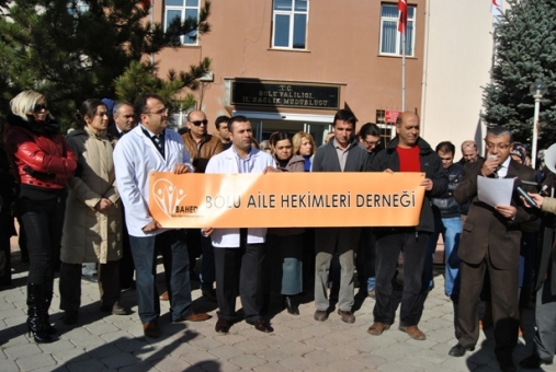 Bolu Aile Hekimleri Derneği, İl Sağlık Müdürlüğü önünde toplanarak Sağlık Bakanlığı politikalarını eleştirdi. Eylem yapan doktorlar, dünyanın hiçbir yerinde olmayan bir uygulama ile aile hekimlerine acilde nöbet tutturulmak istendiğini söyleyen Bolu Aile Hekimleri Derneği Başkanı Faruk Karslı “Hiçbir kurum ve kuruluşun acilinde çalışmak istemiyoruz” dedi.